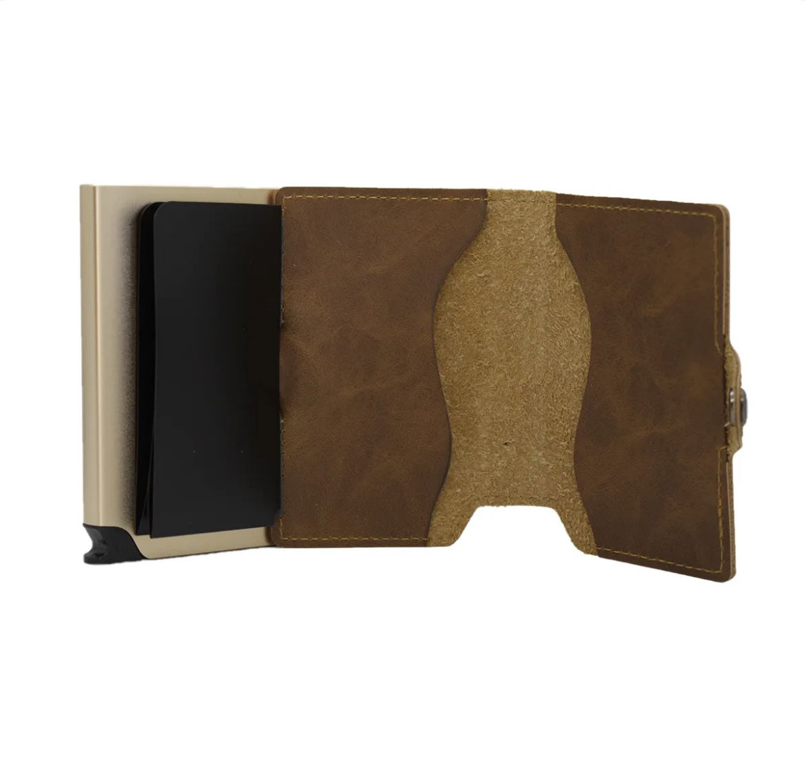 Diseñada pensando en la estética moderna, esta billetera no solo se ve bien, sino que también es increíblemente funcional. Con su mecanismo deslizable para tarjetas, accedés rápidamente a lo que necesitás, evitando buscar en tus bolsillos entre todas tus cosas.
