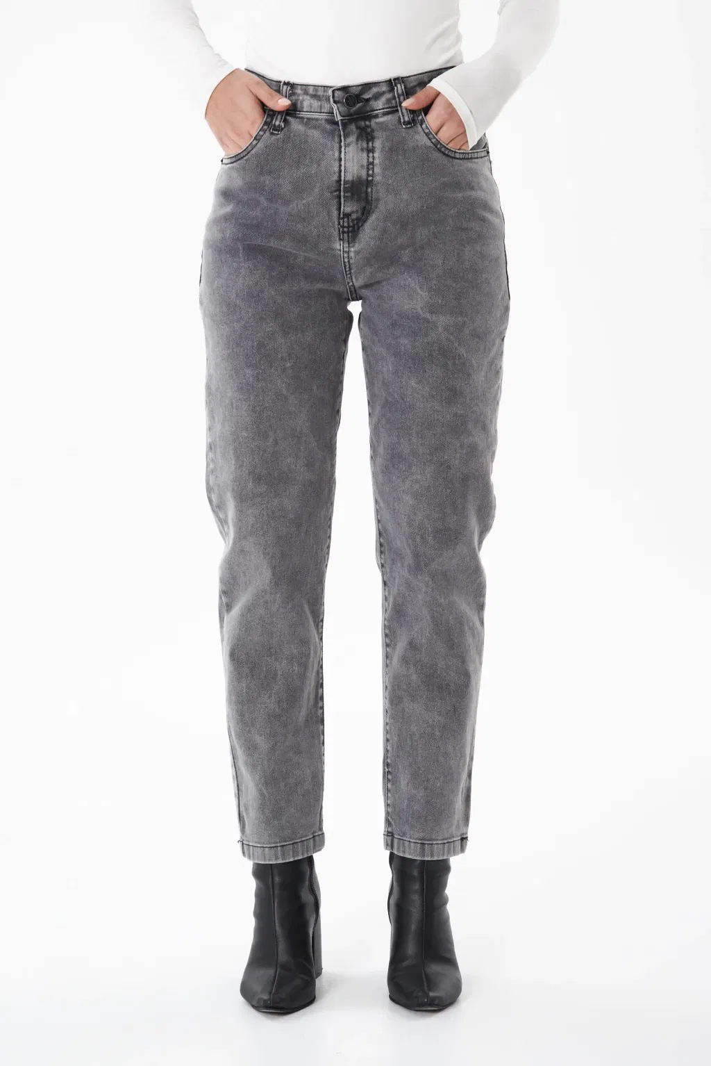 Jean mom gris oscuro
