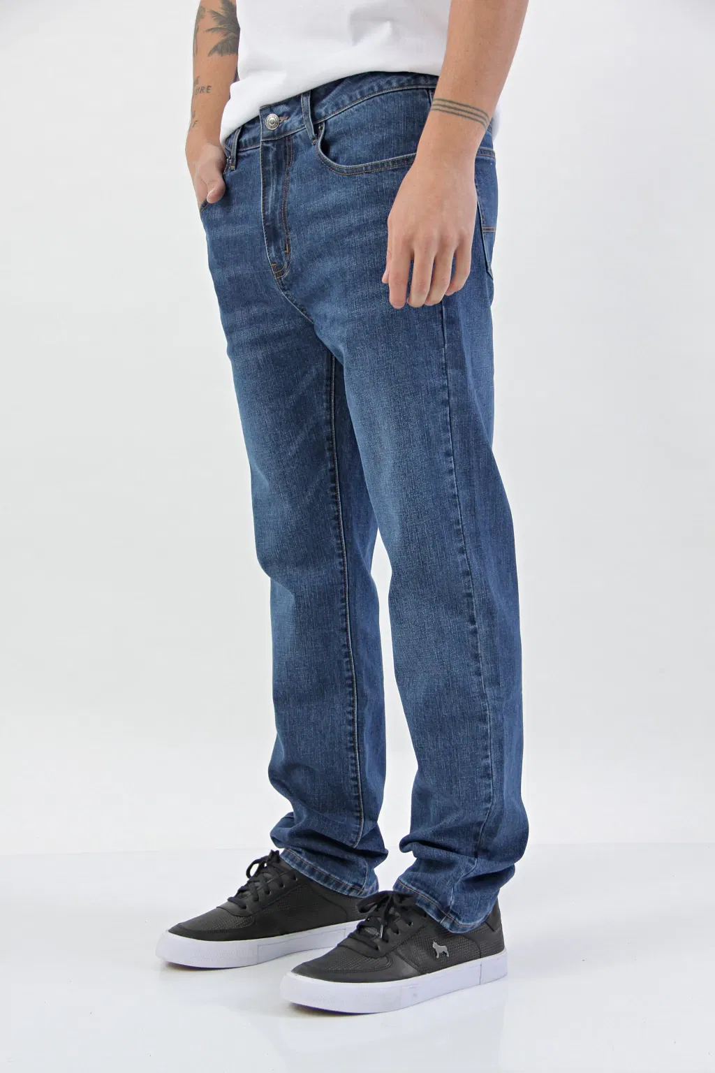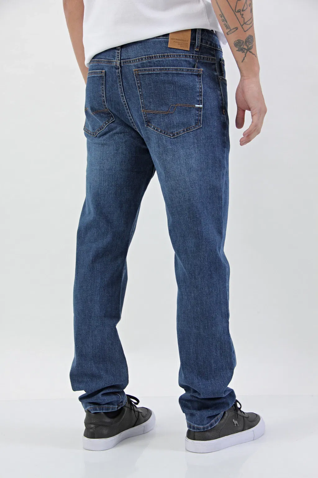 Confeccionado en denim 98% algodón y 2% elastano, este jean de calce regular fit te brinda la libertad de movimiento que necesitás.