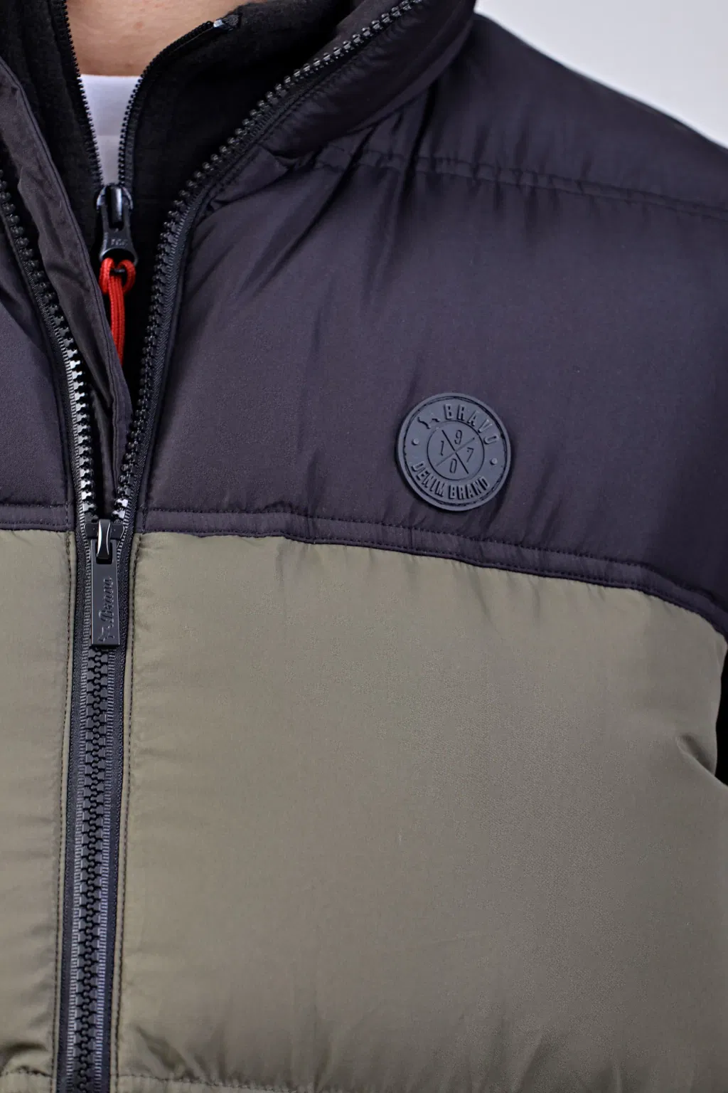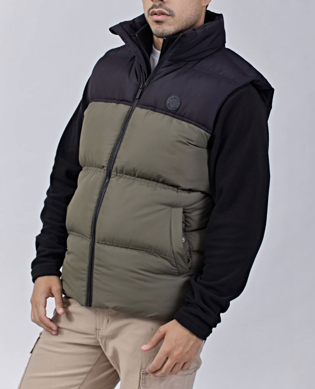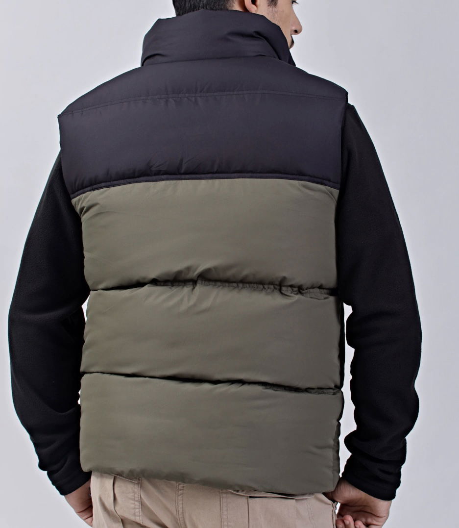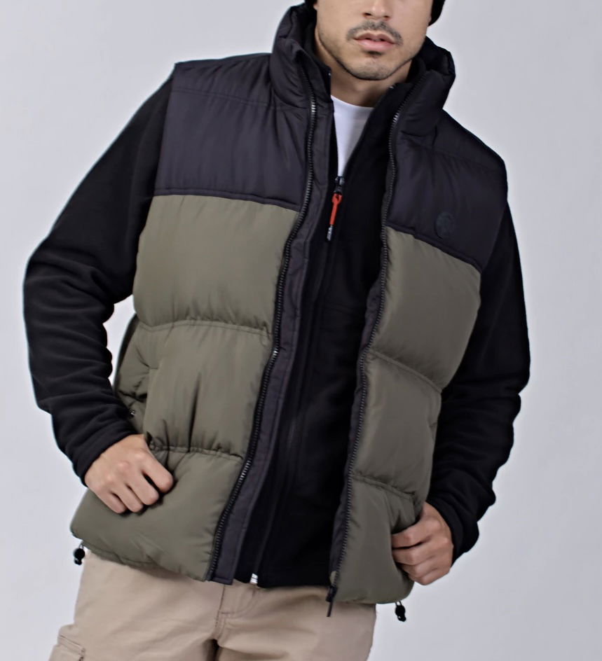 Chaleco combinado en verde y negro de nylon con canelones
