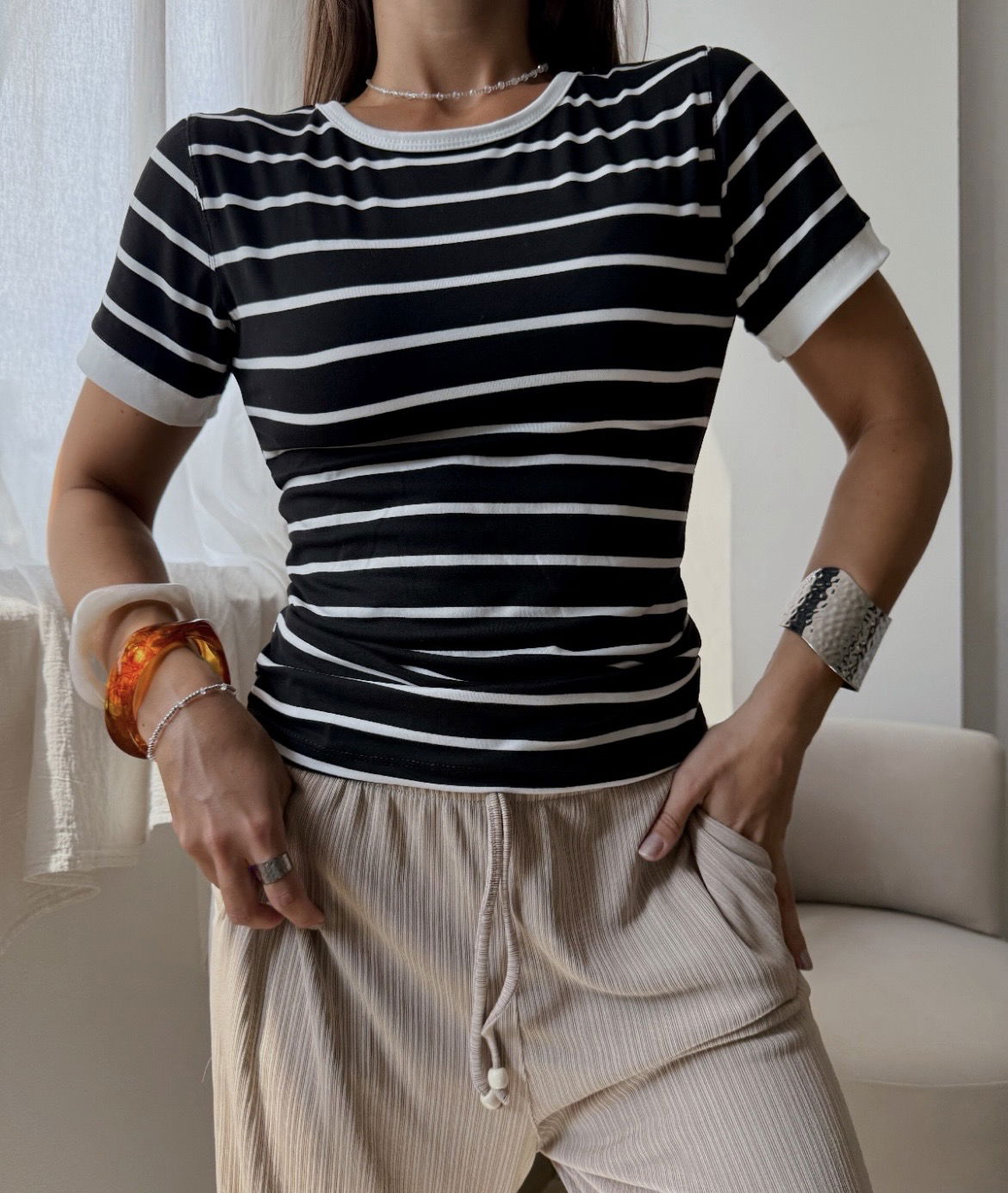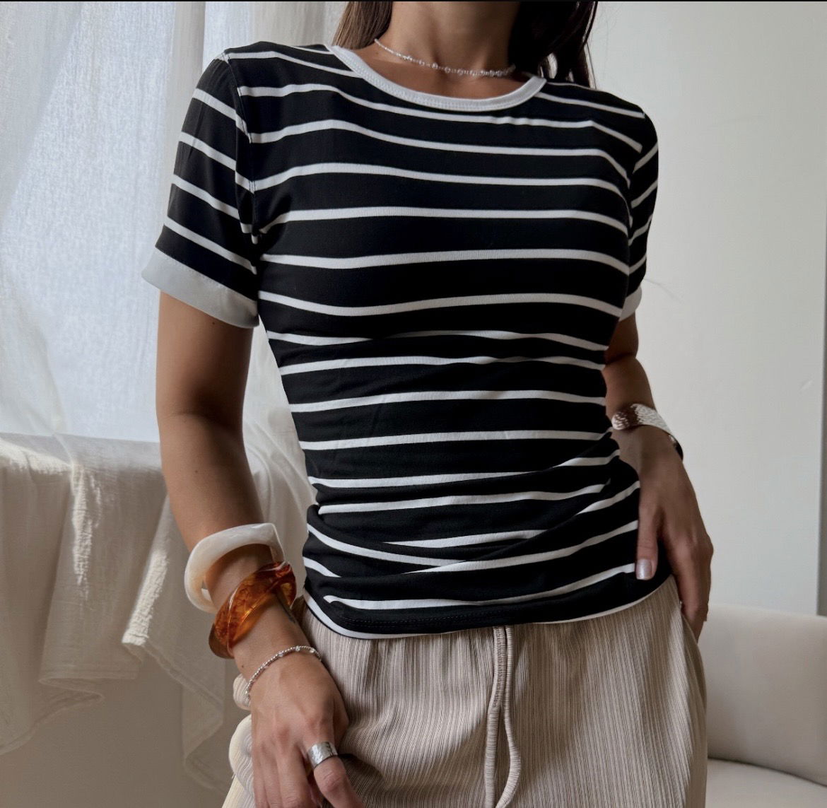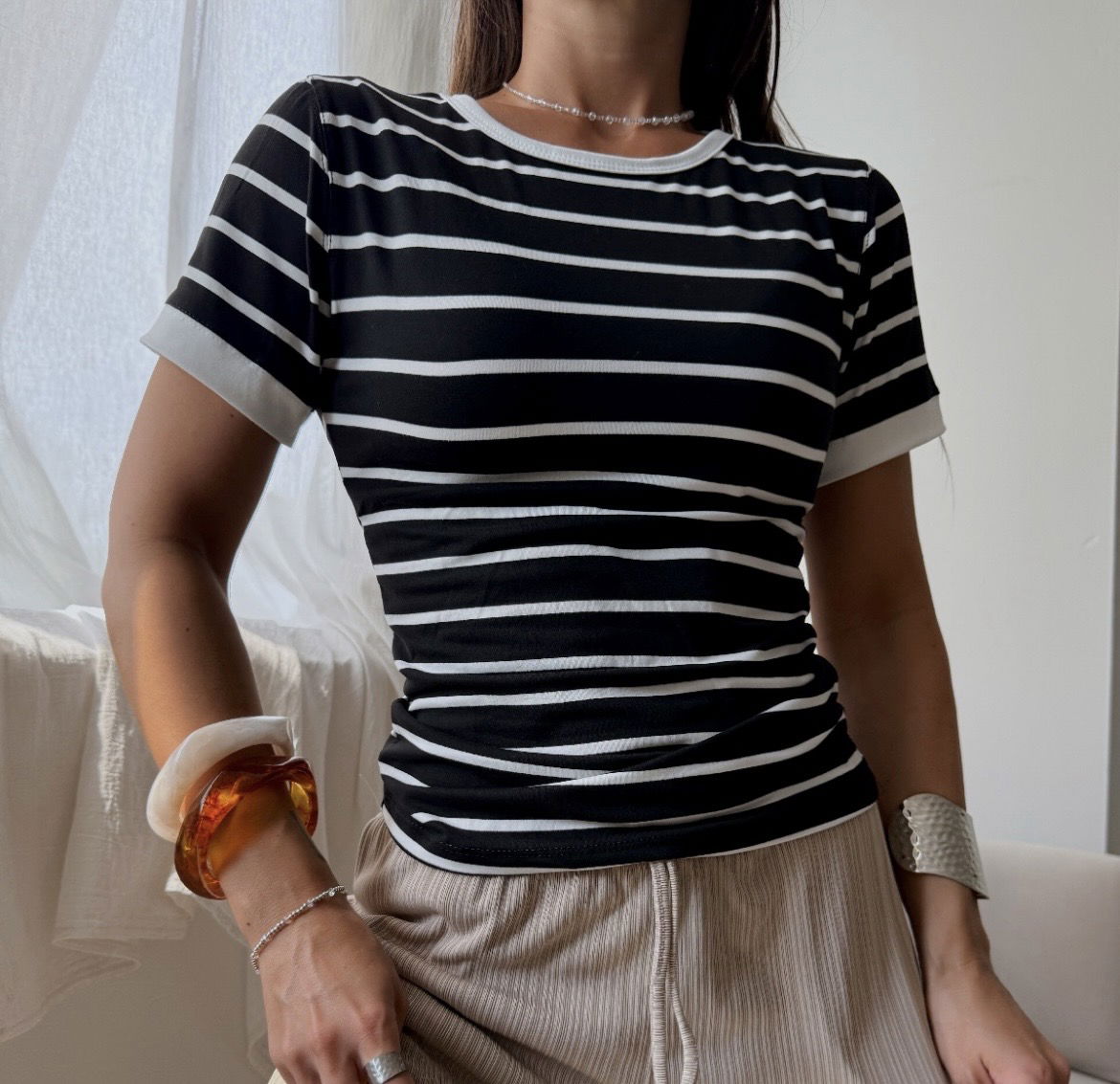Remera a rayas negra