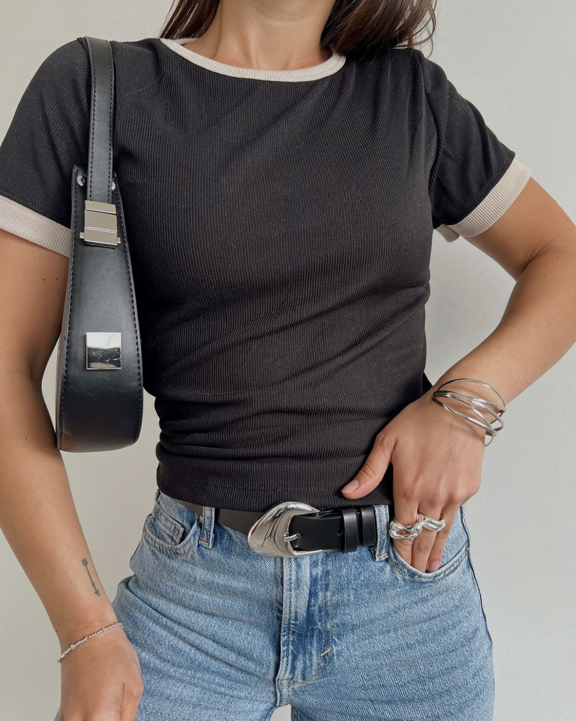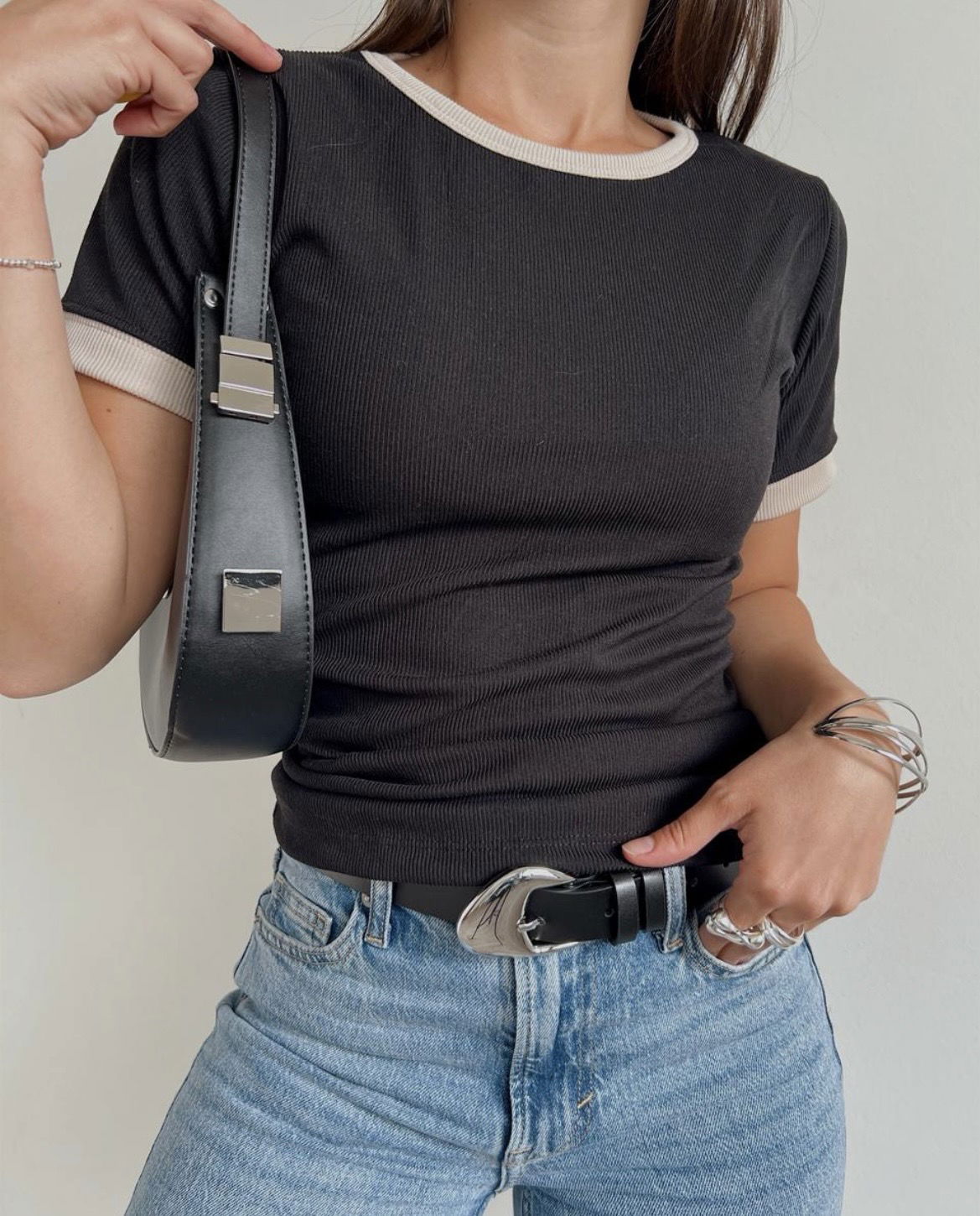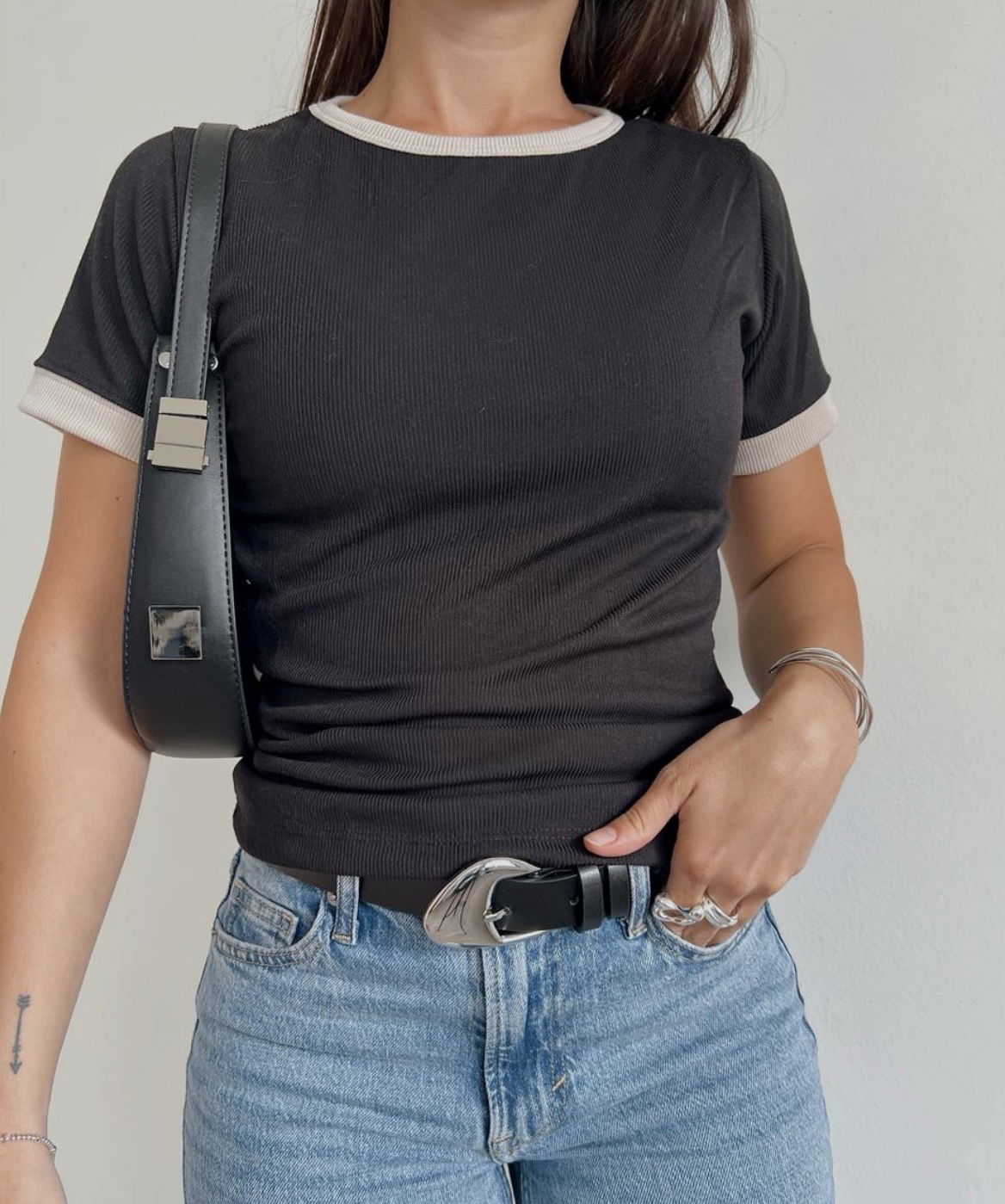 Remera morley bicolor negra