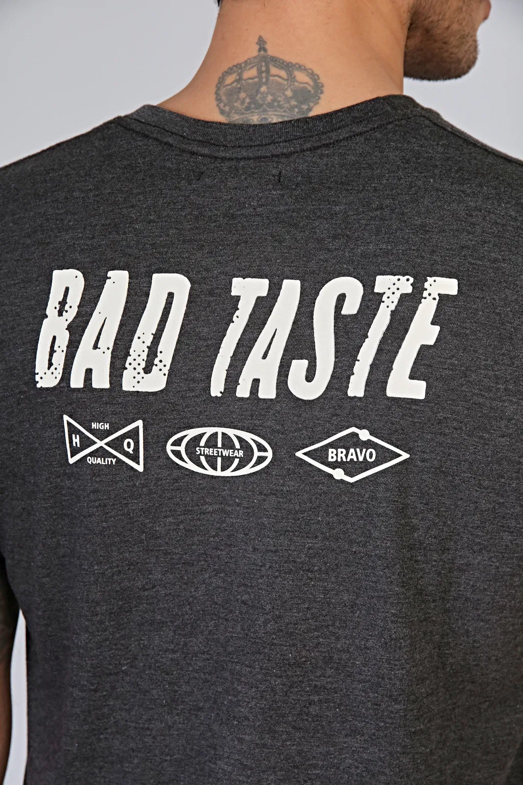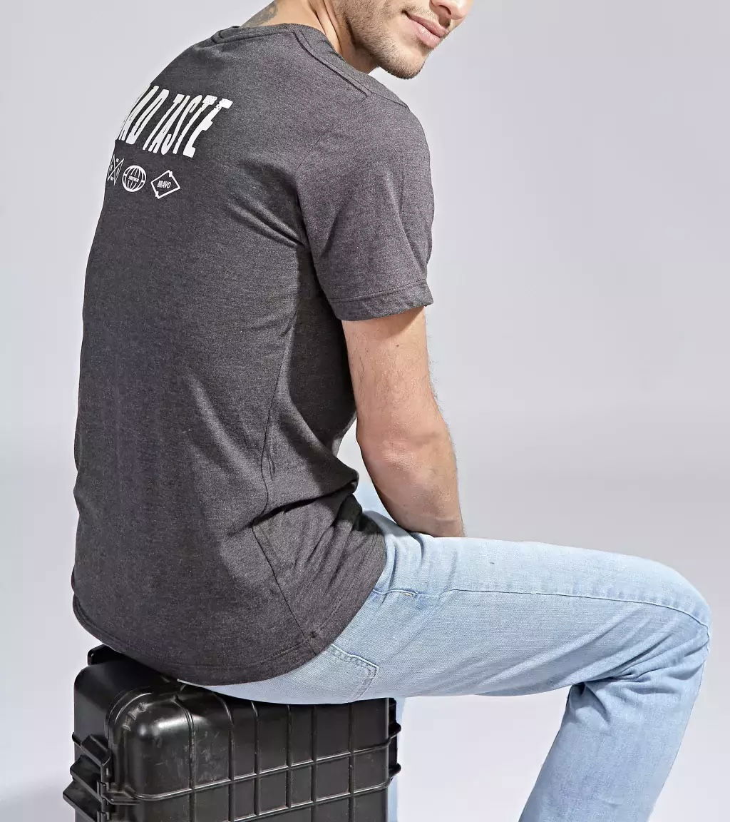 Su diseño de estilo recto incluye doble estampa, una simple en el frente y otra con relieve en la espalda, lo que brinda un toque moderno. La prenda a su vez cuenta con cuello en ribb al tono.