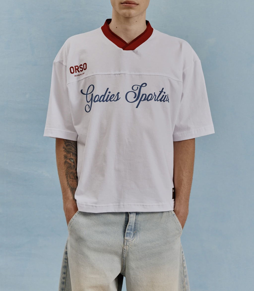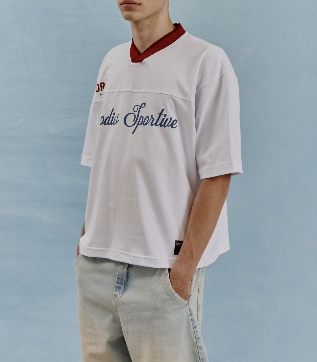 La Camiseta Boxy Sportive combina estilo y comodidad con su calce boxy y recorte delantero, confeccionada en jersey de algodón pesado.