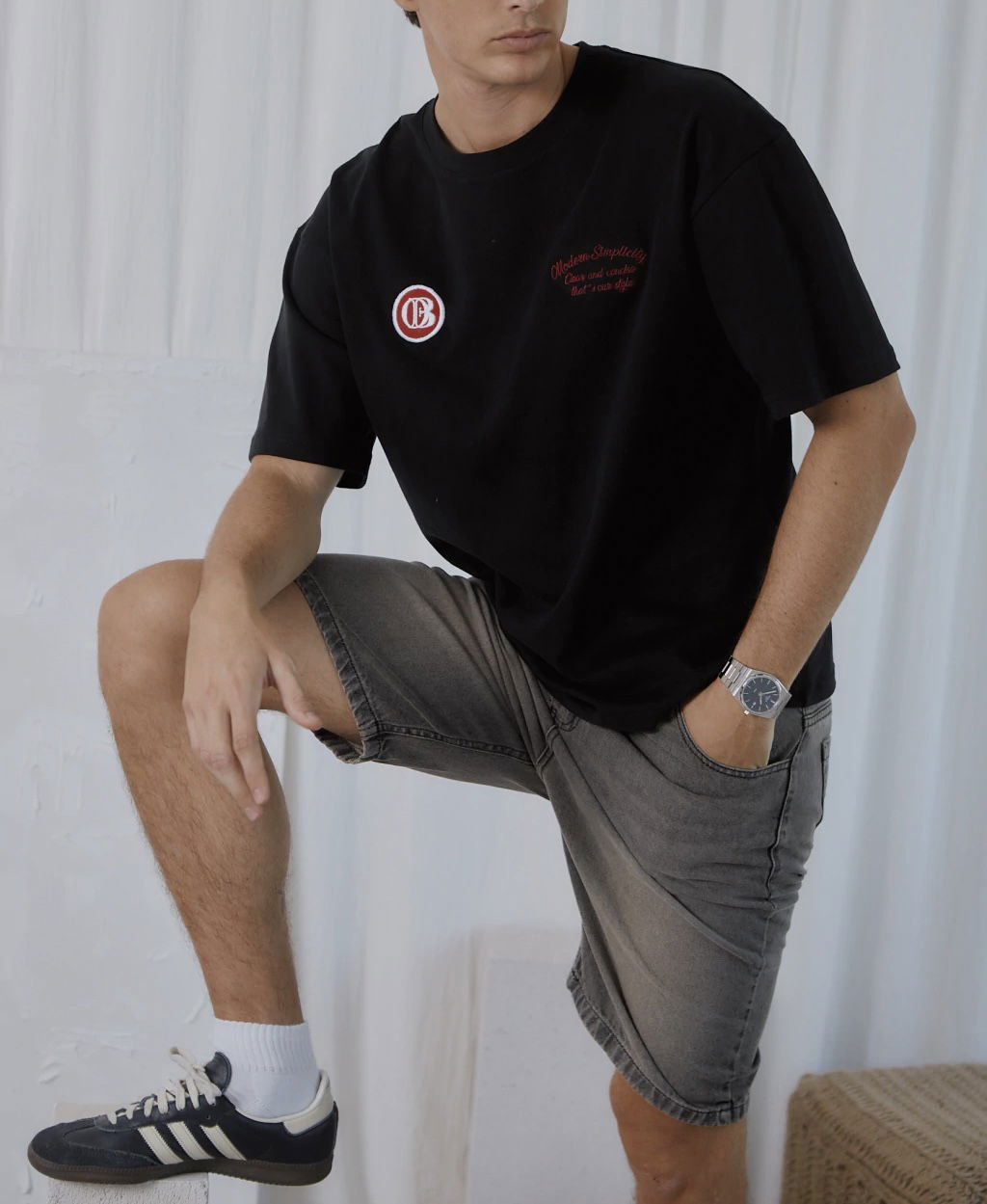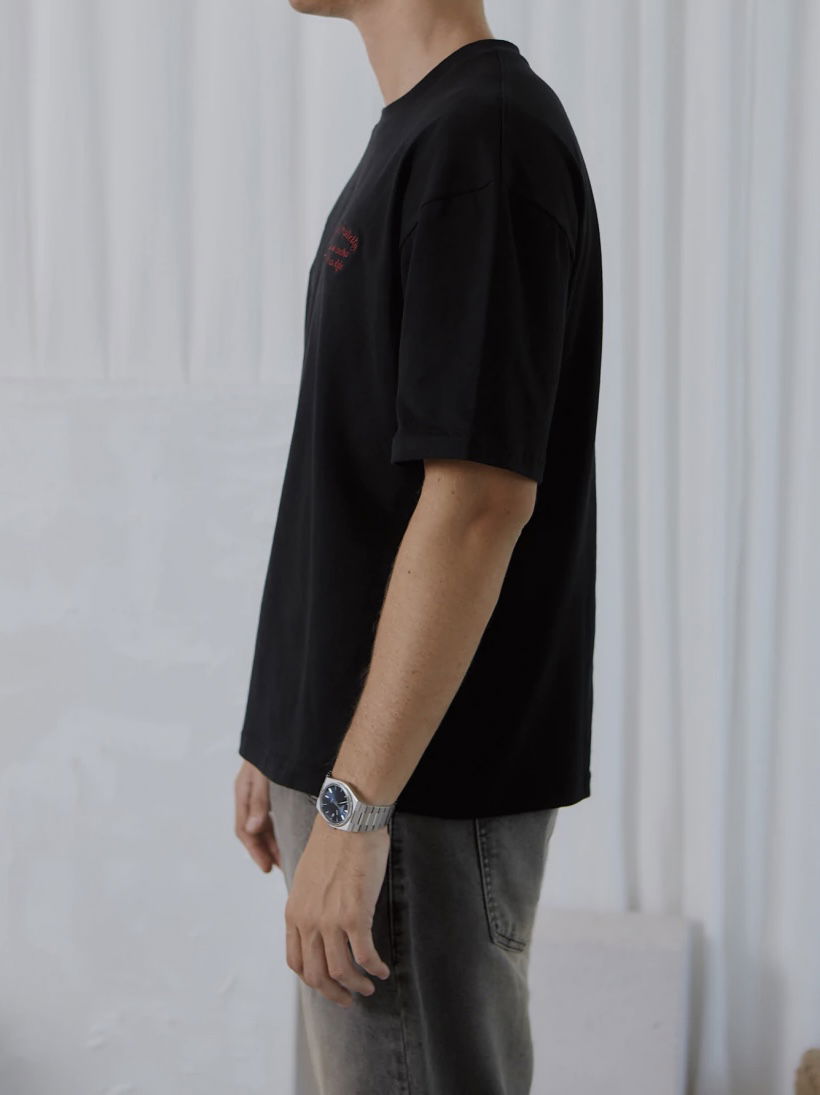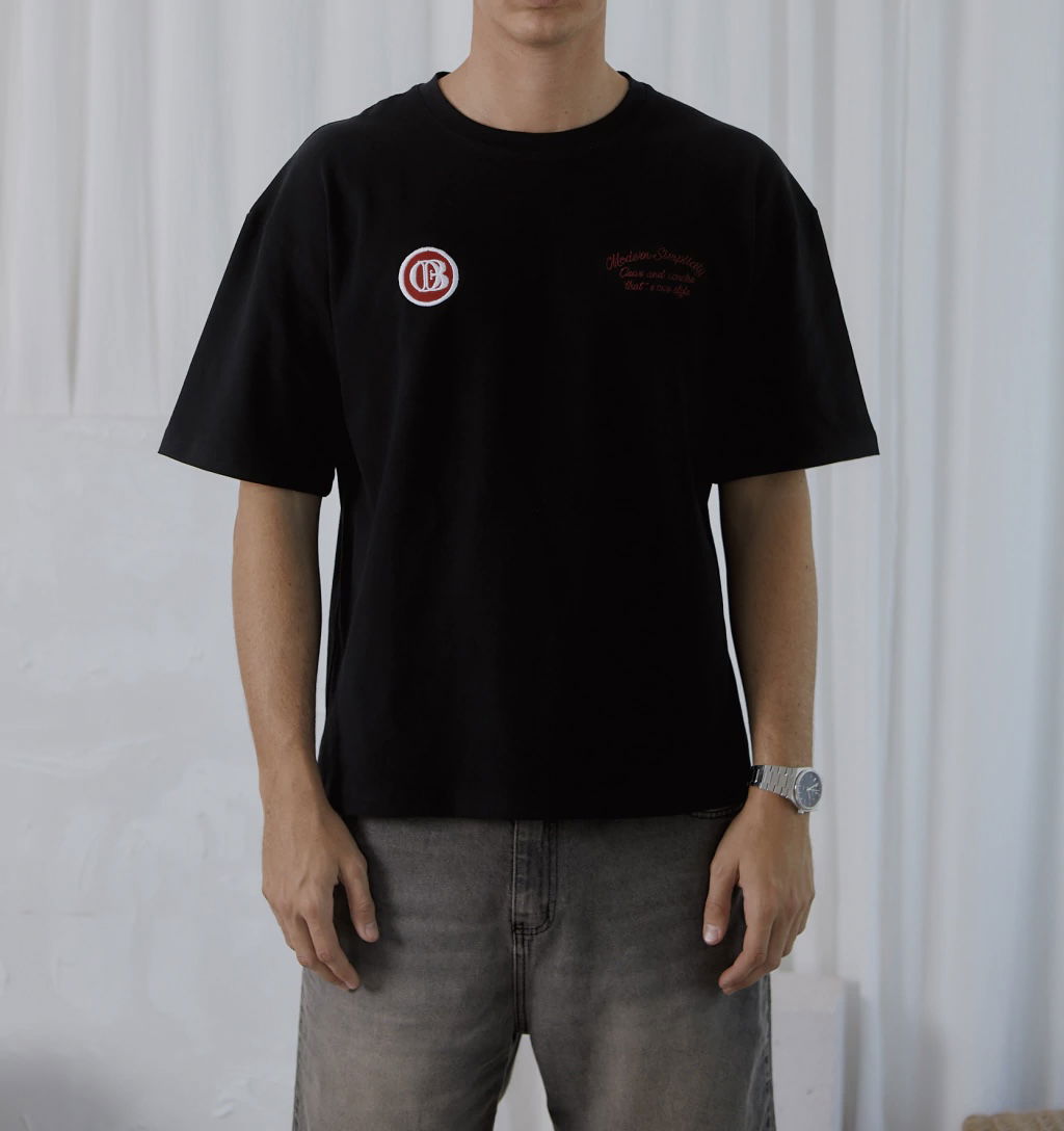 Remera oversize confeccionada en jersey doble gamuzado, un tejido suave y de alto gramaje que aporta estructura y confort. Presenta bordado en el frente del lado izquierdo y un parche festoneado en el lado derecho, que refuerzan su identidad y estilo distintivo.