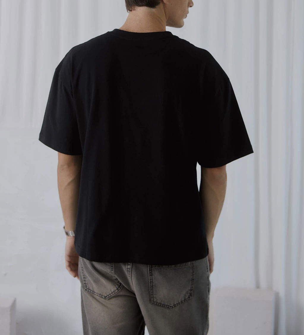 Remera oversize confeccionada en jersey doble gamuzado, un tejido suave y de alto gramaje que aporta estructura y confort. Presenta bordado en el frente del lado izquierdo y un parche festoneado en el lado derecho, que refuerzan su identidad y estilo distintivo.