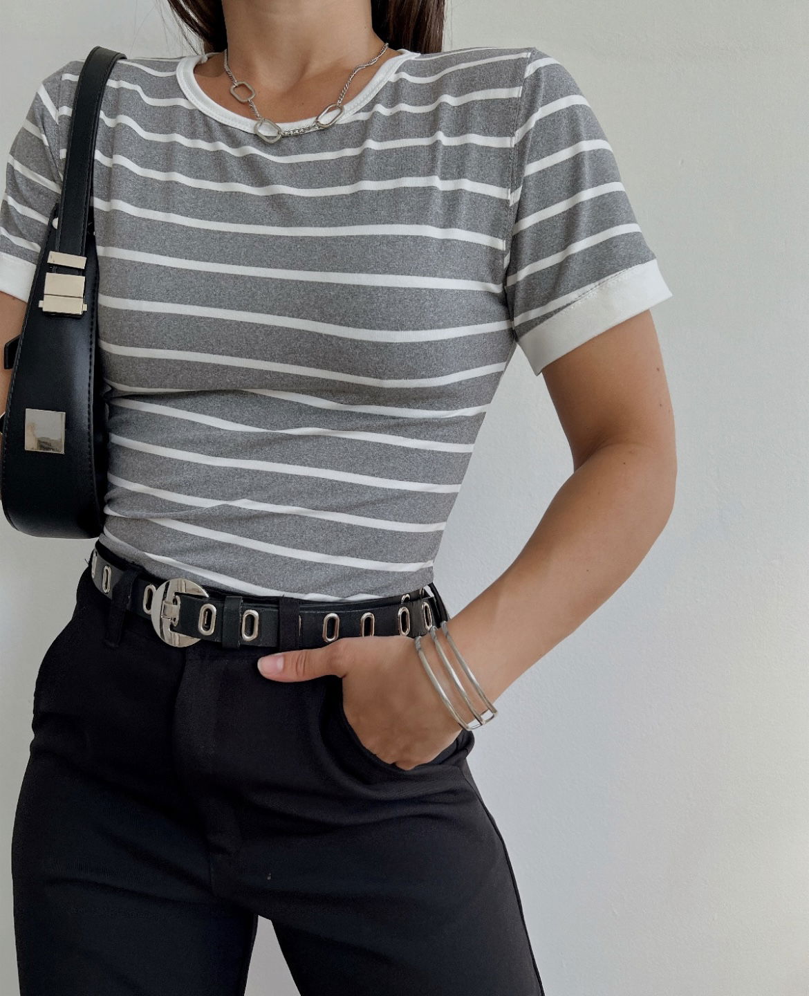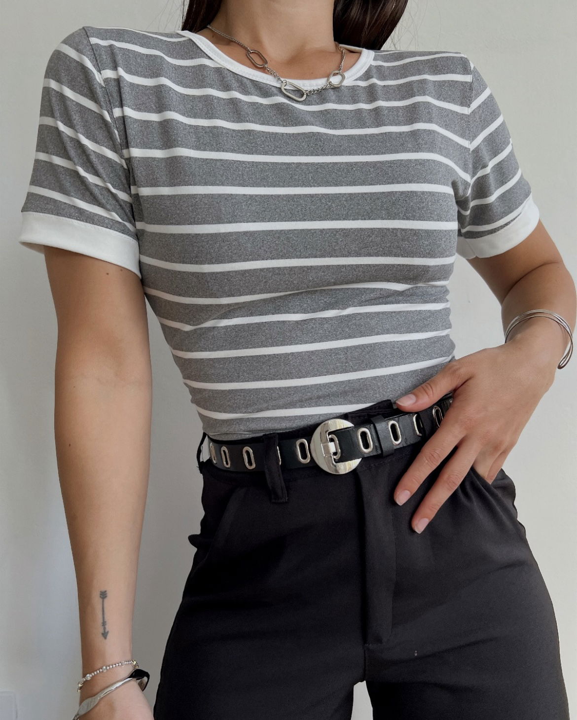 Remera a rayas gris